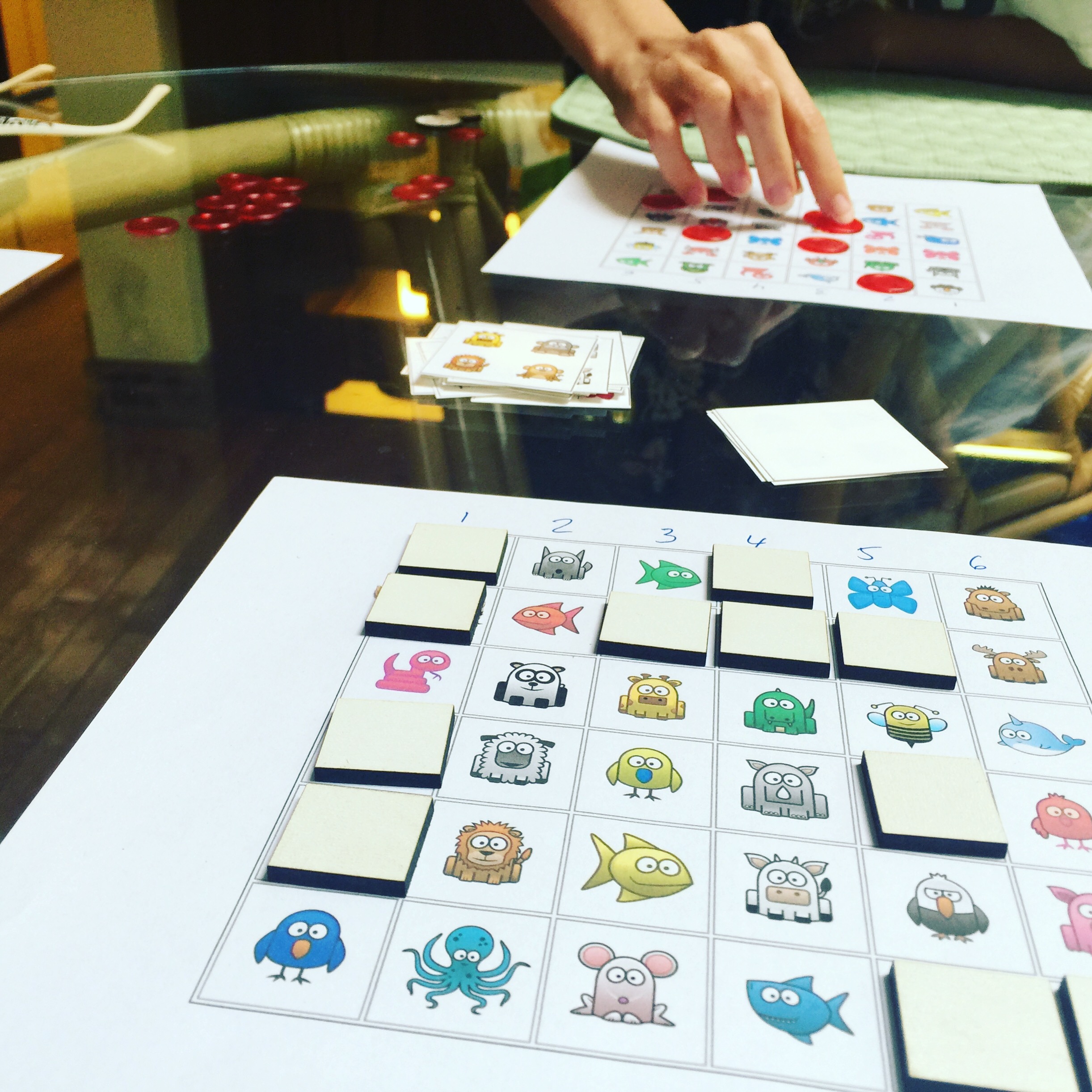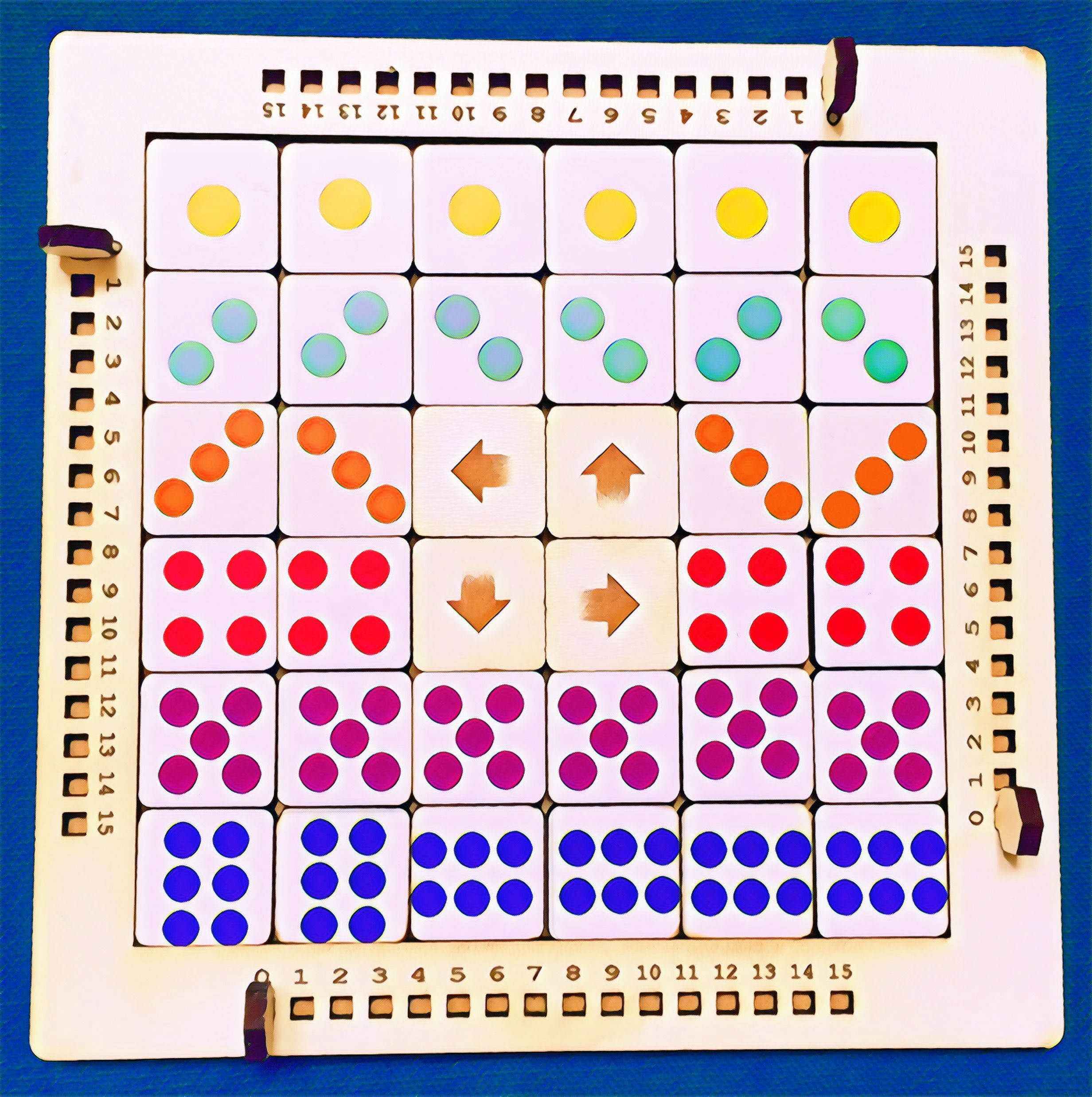 SETUP: Place all the tiles face up in the grid randomly. Reset all score board markers to zero.