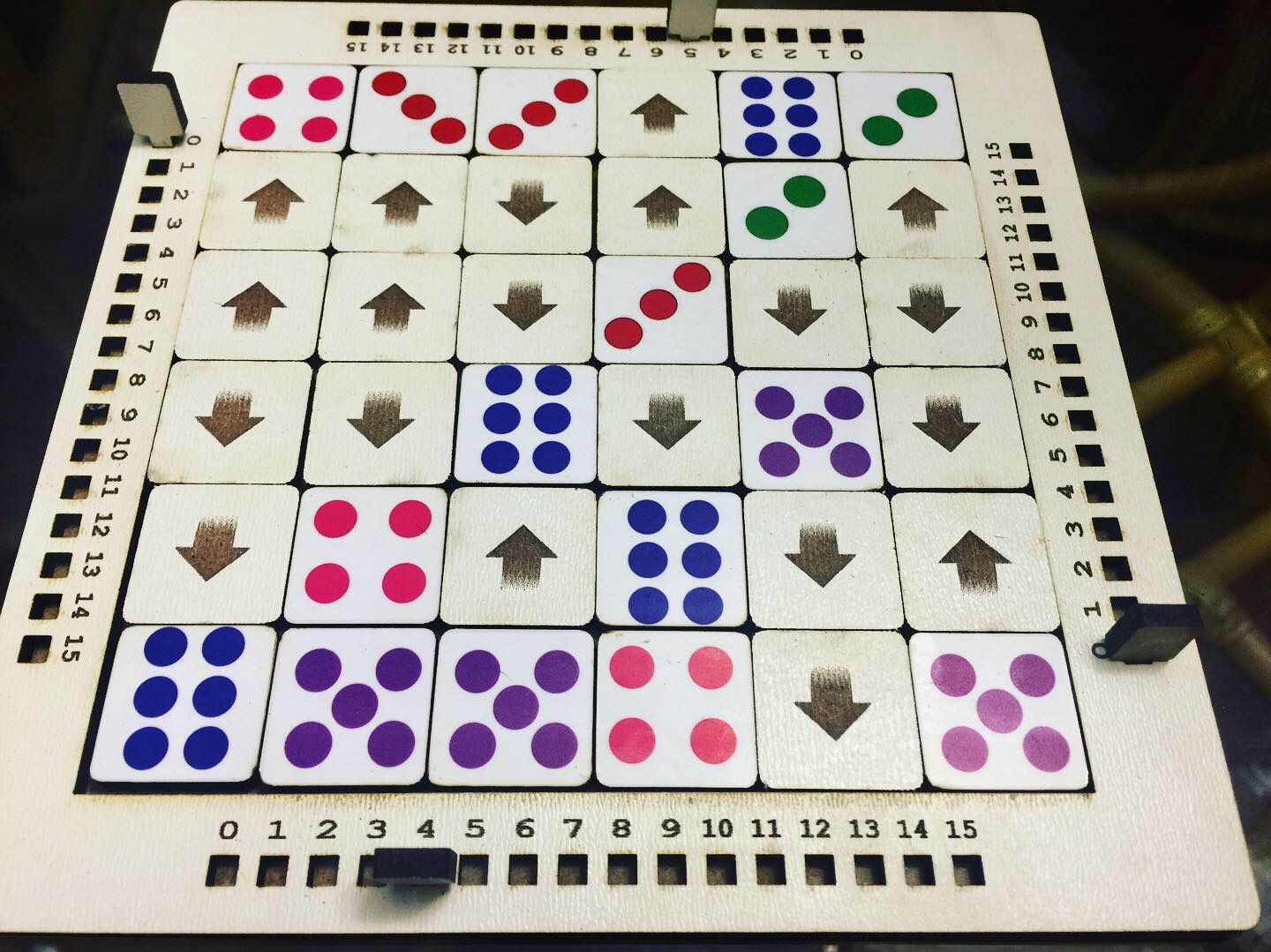SETUP: Place all the tiles face up in the grid randomly. Reset all score board markers to zero.